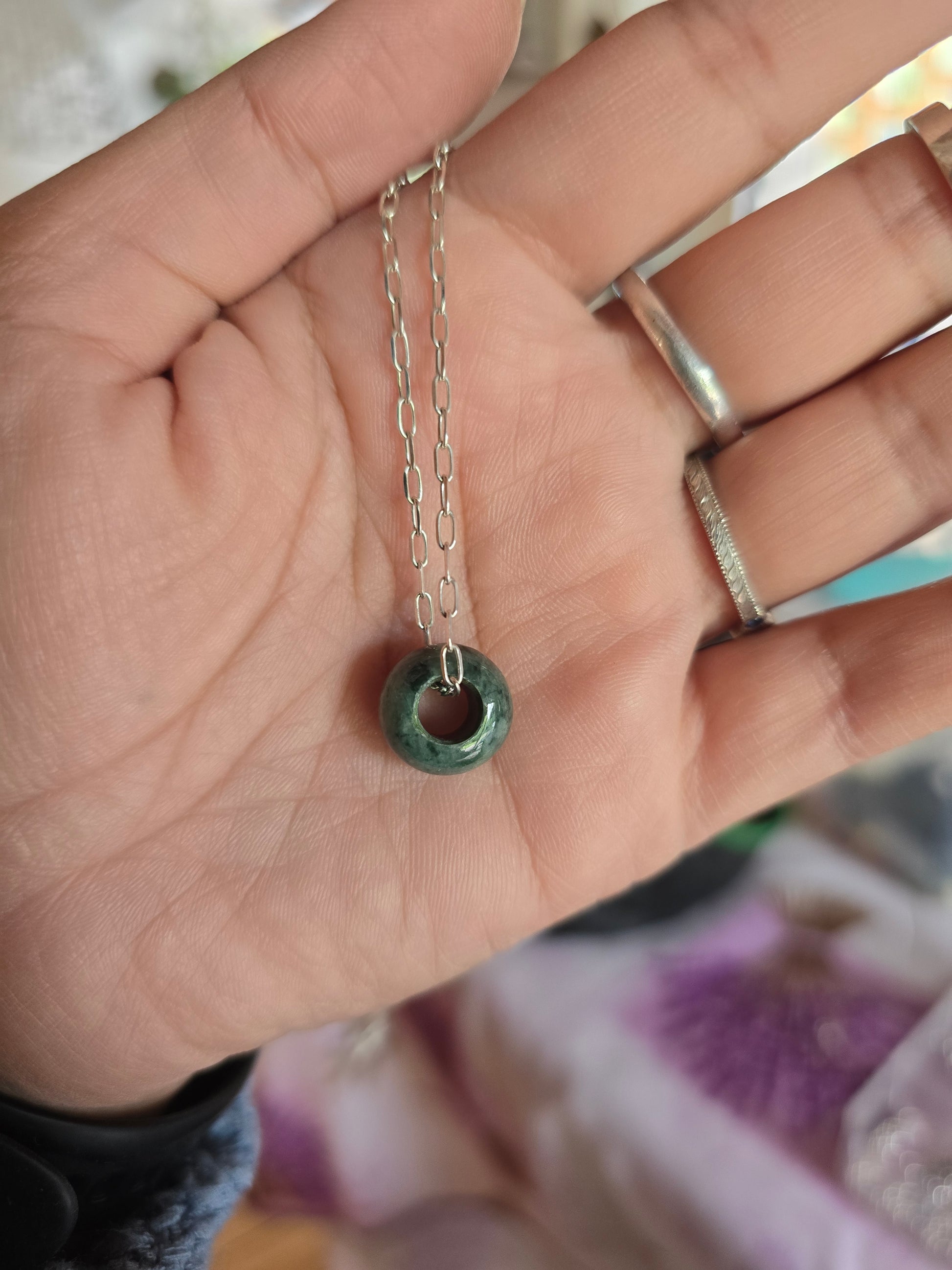 Colgante Jade piedra natural + cadena 45 cm plata 950