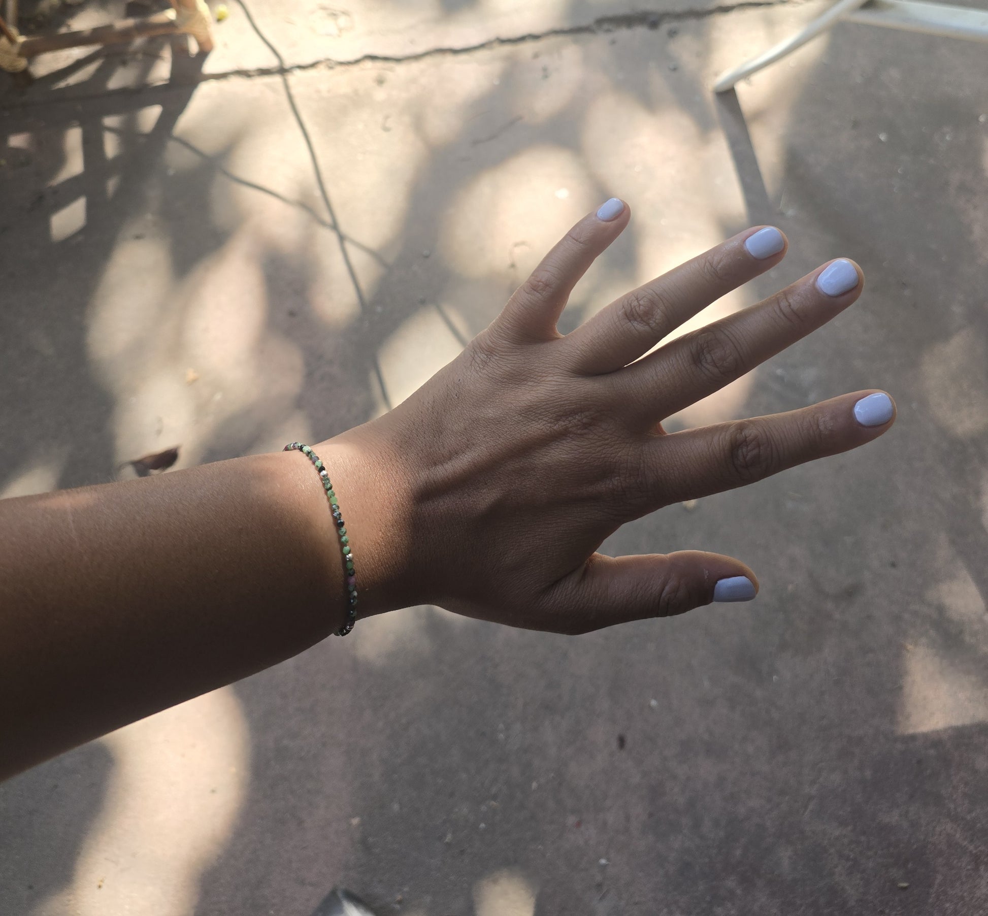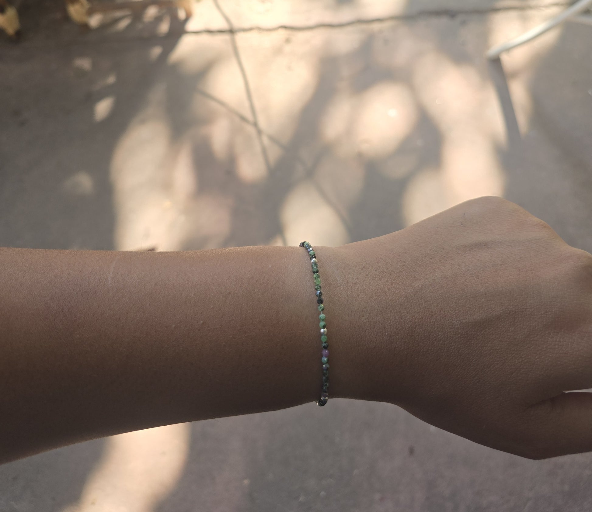 Pulsera de zoisita delgada con mostacillas de plata 950