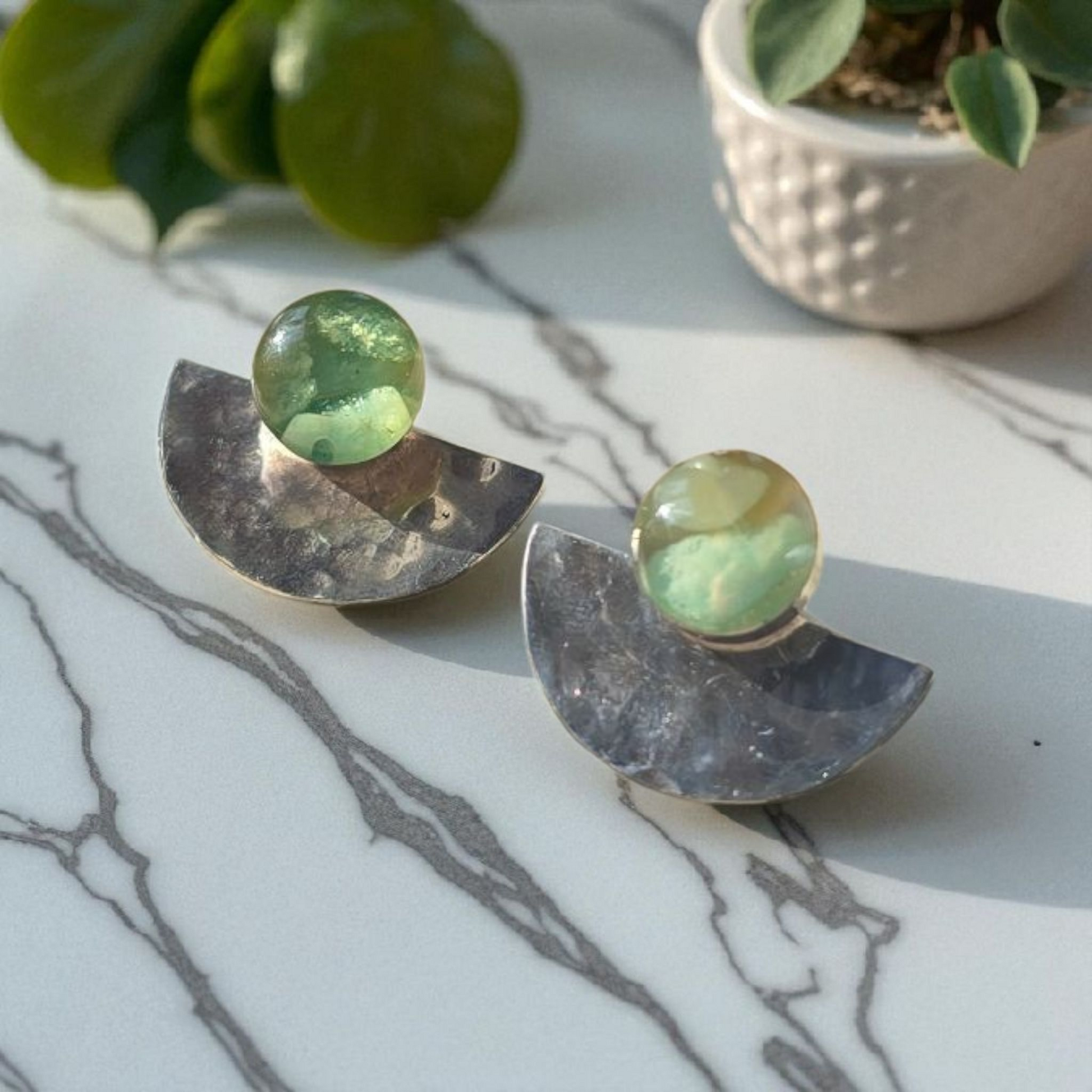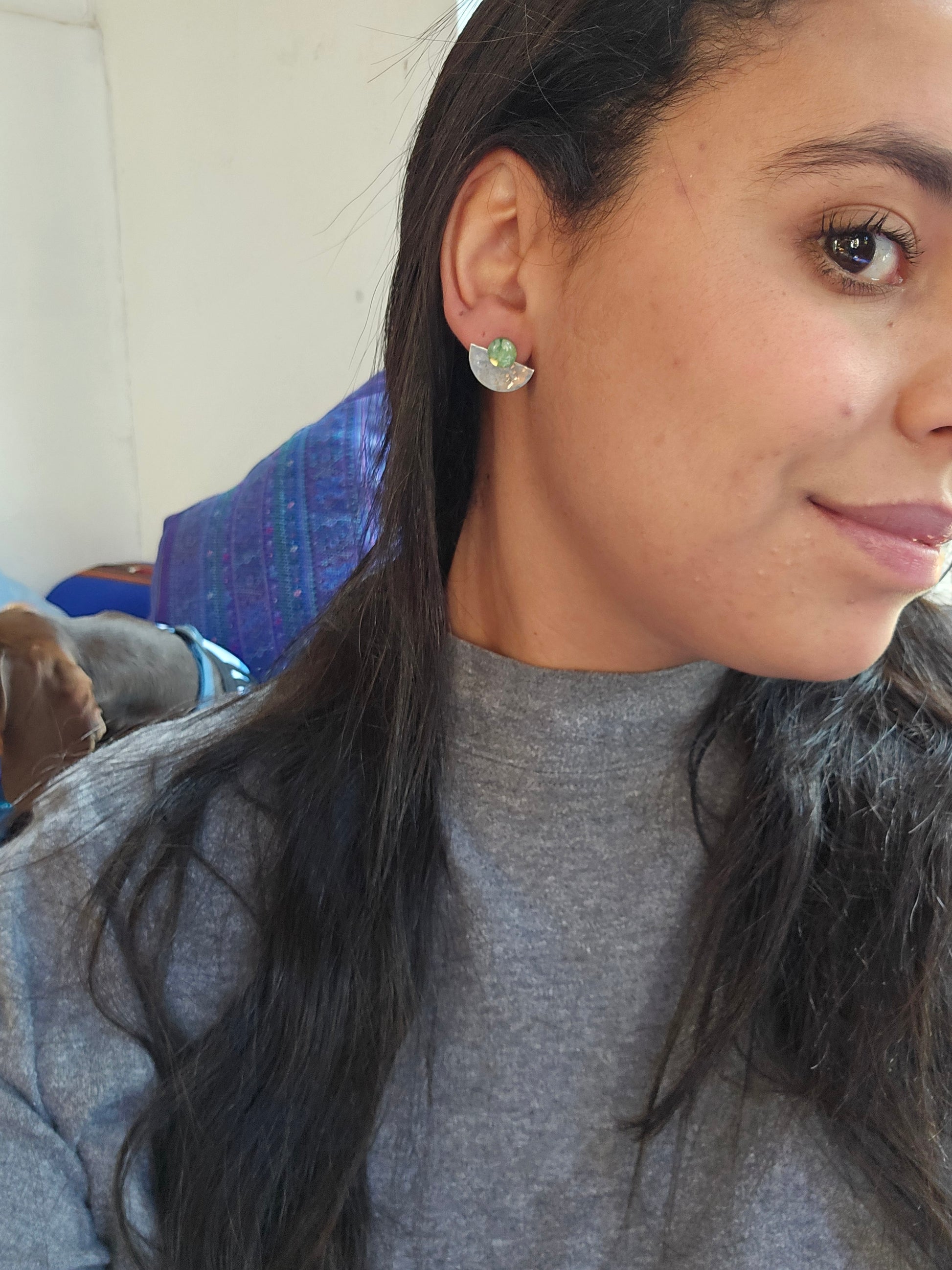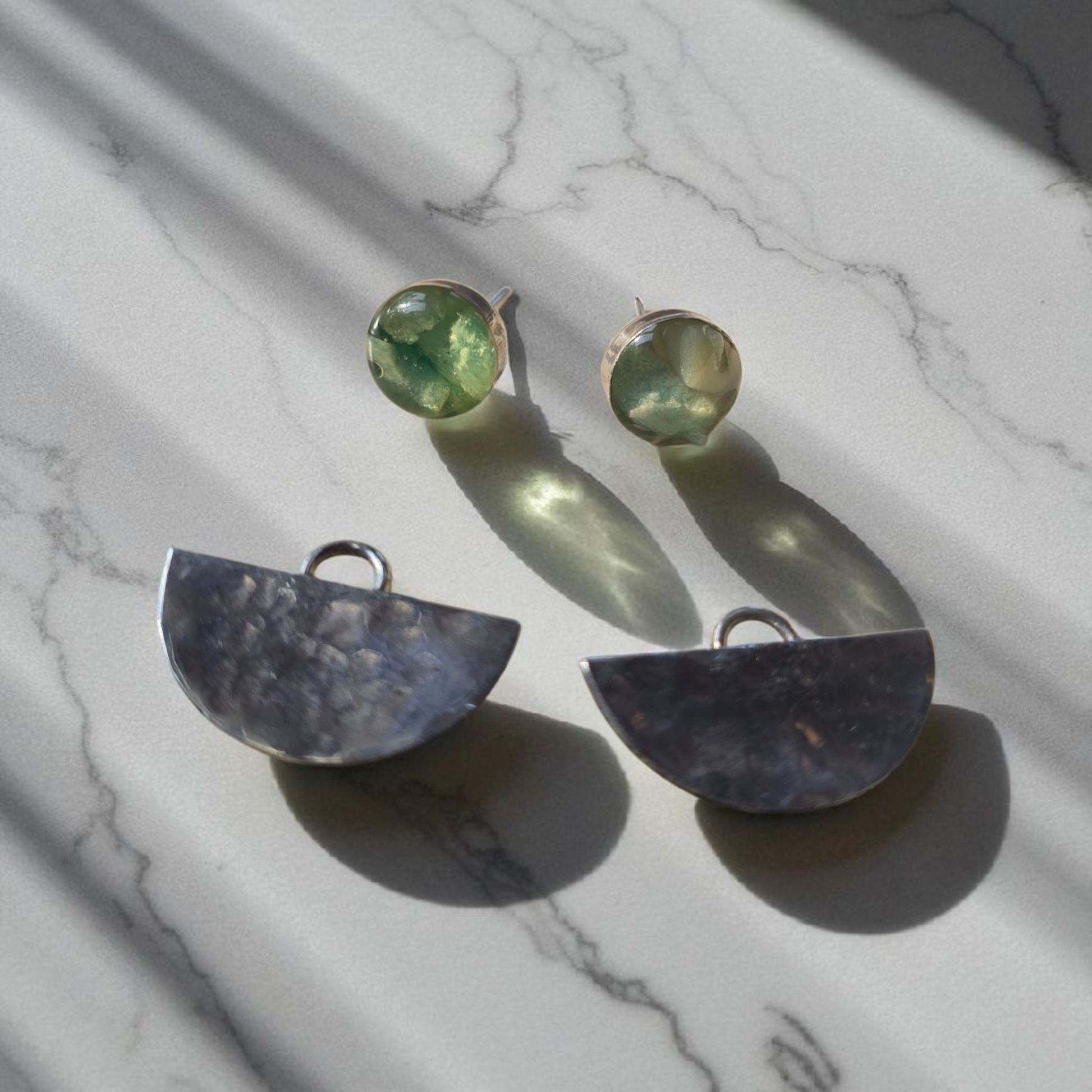 Top Back aros intercambiables PEQUEÑOS Top Amazonita y Back medio circulo plata 950