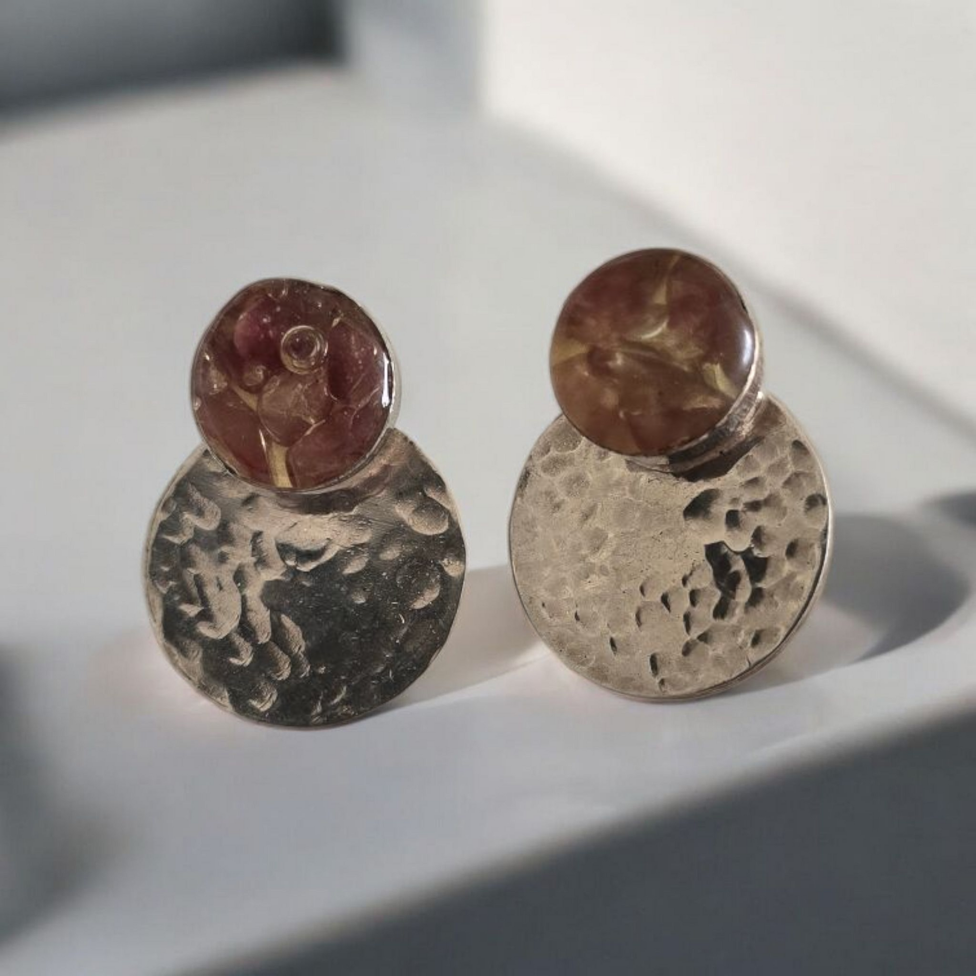 Top grande Cuarzo Fresa grande encapsulada y Back Circular pequeño plata 950